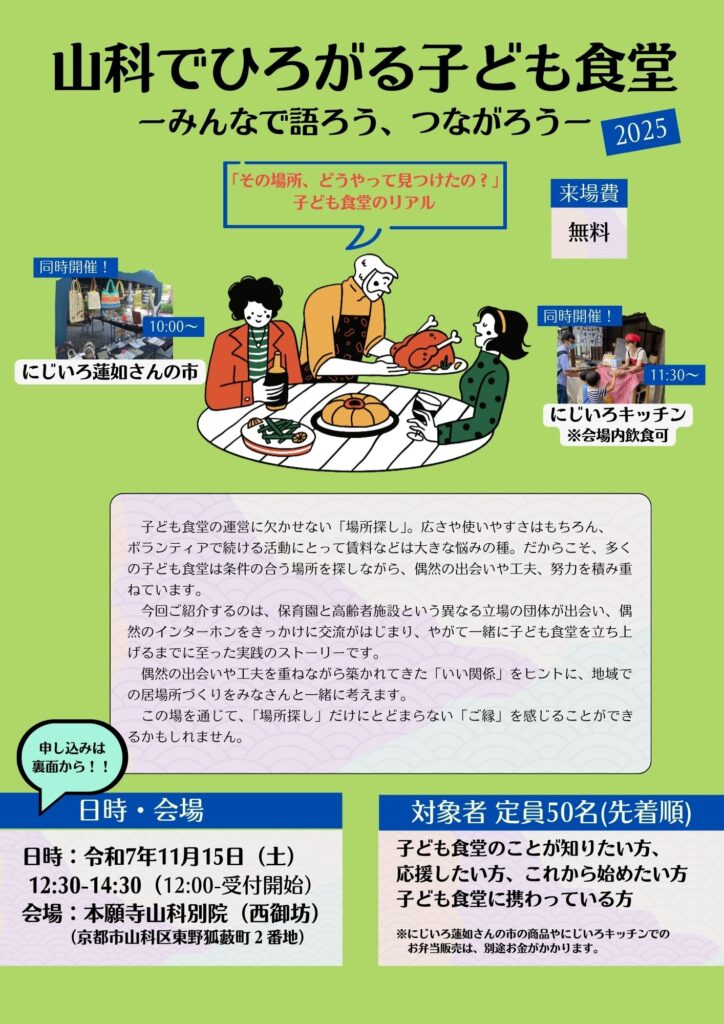 「山科で広がる子ども食堂 ーみんなで語ろう、つながろうー」【11月15日(土)】開催のご案内