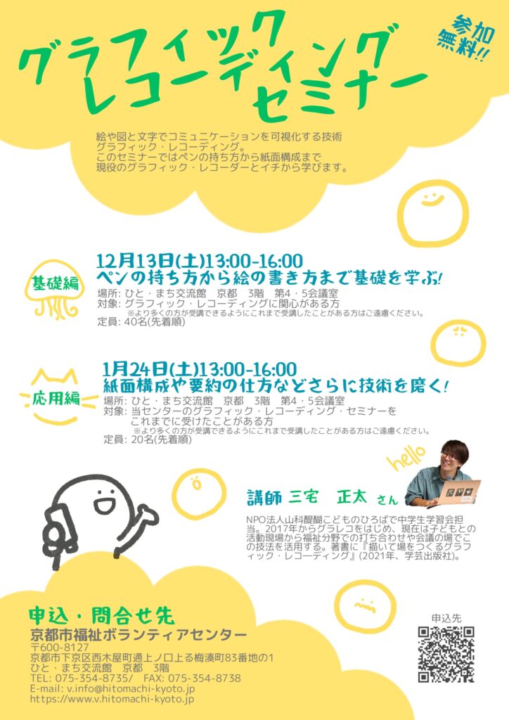 京都市福祉ボランティアセンターより、「グラフィック・レコーディング・セミナー」のご案内です。