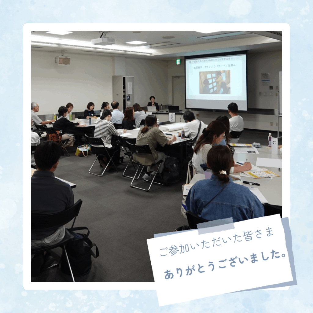 - 子どもたち自身が、自分だけが楽しいのではなく、「ここは楽しい場所」にしてくれるような話し合いをして欲しいと思っていました。そのヒントや工夫を教えていただけてよかったです。